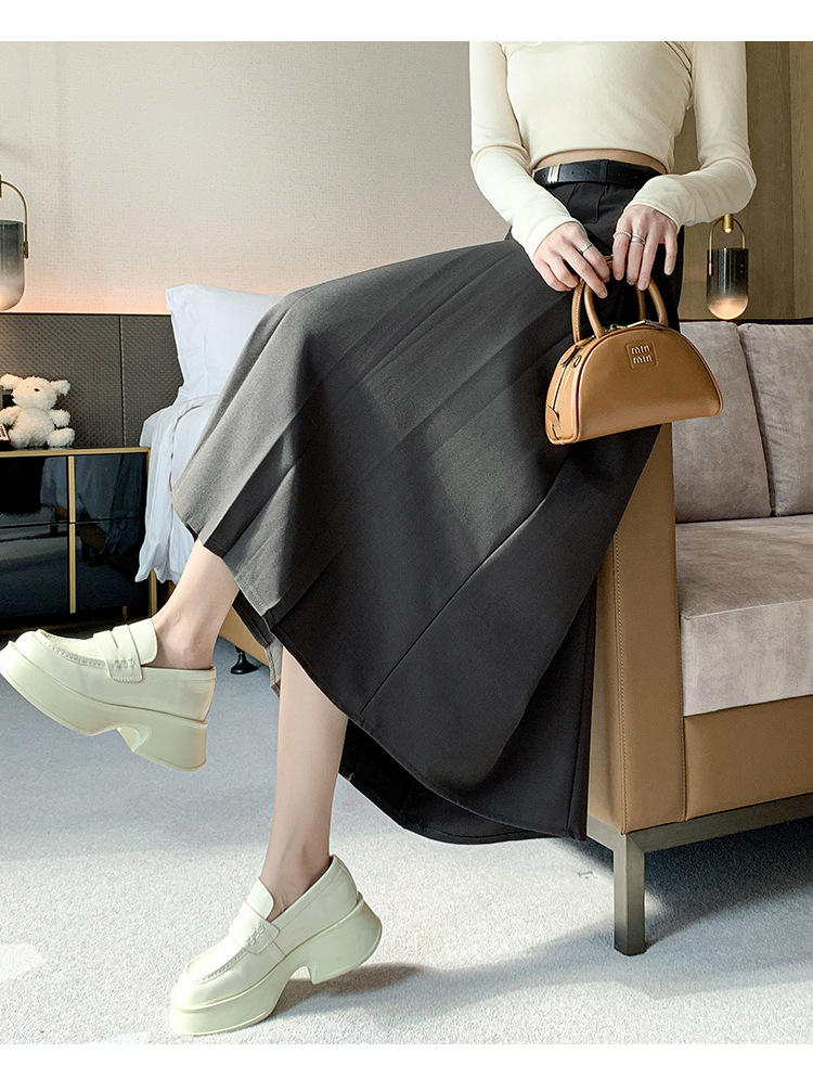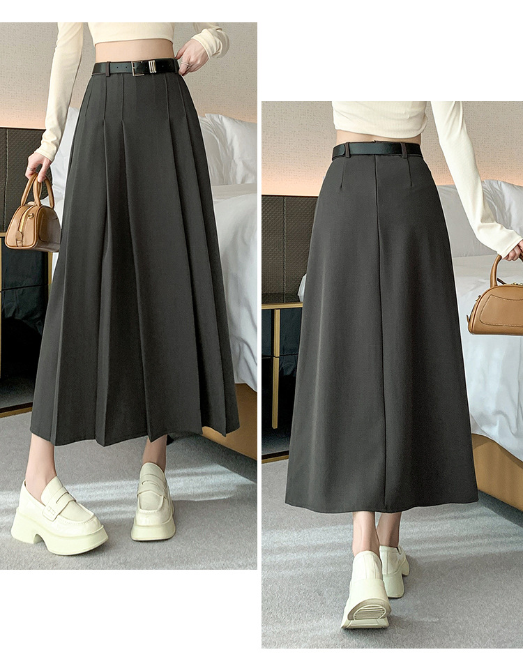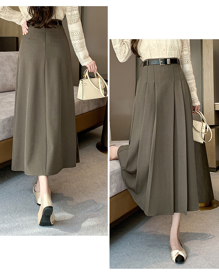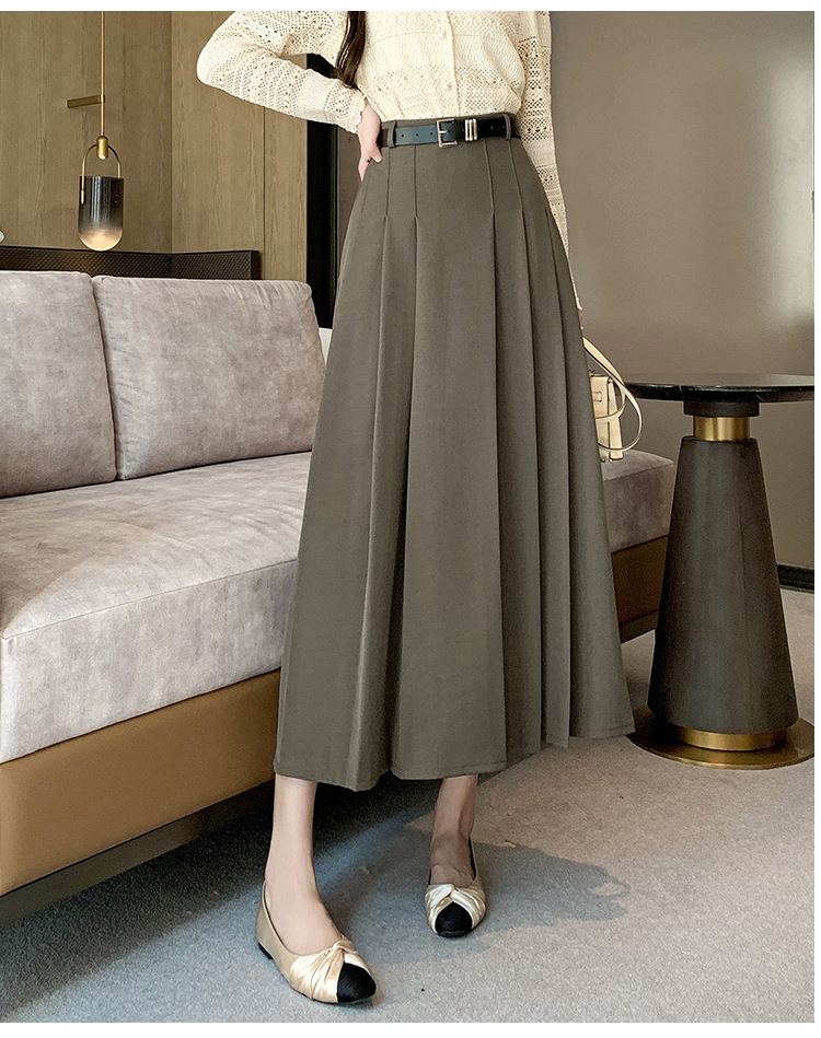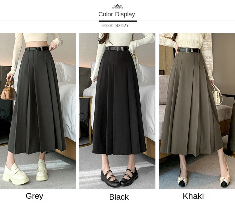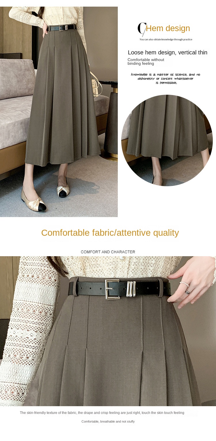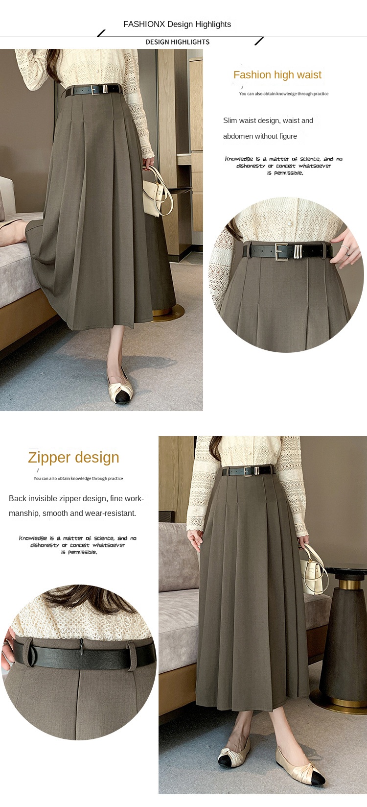 Mid-length A-line Skirt for Women High Waist Pleated Long Skirt Office Style Over-the-Knee Suit Style Umbrella Skirt