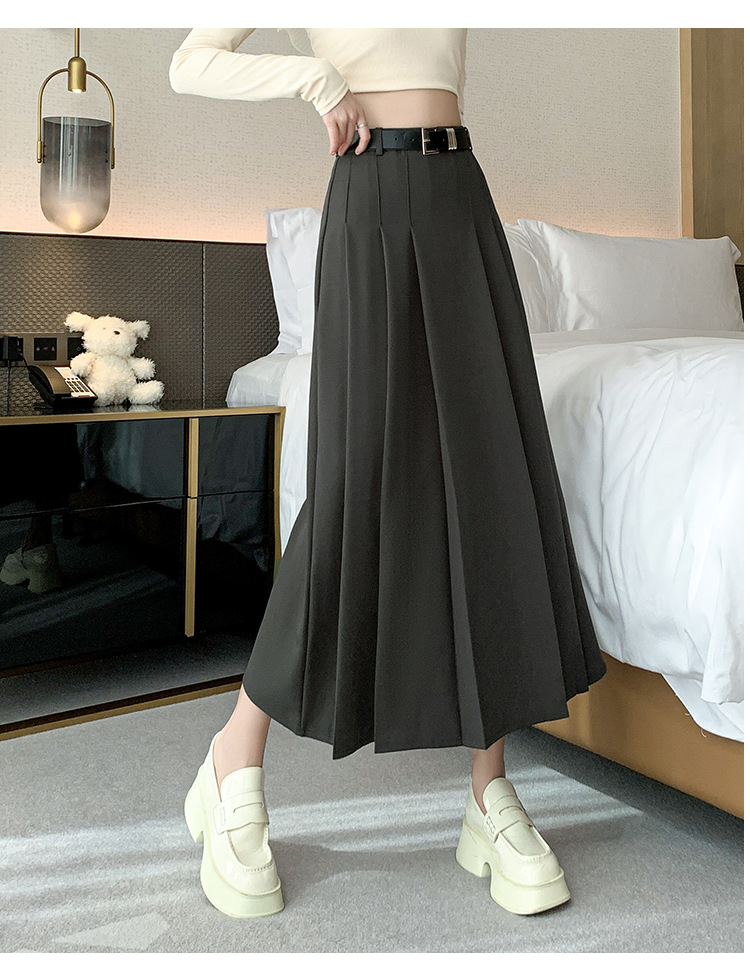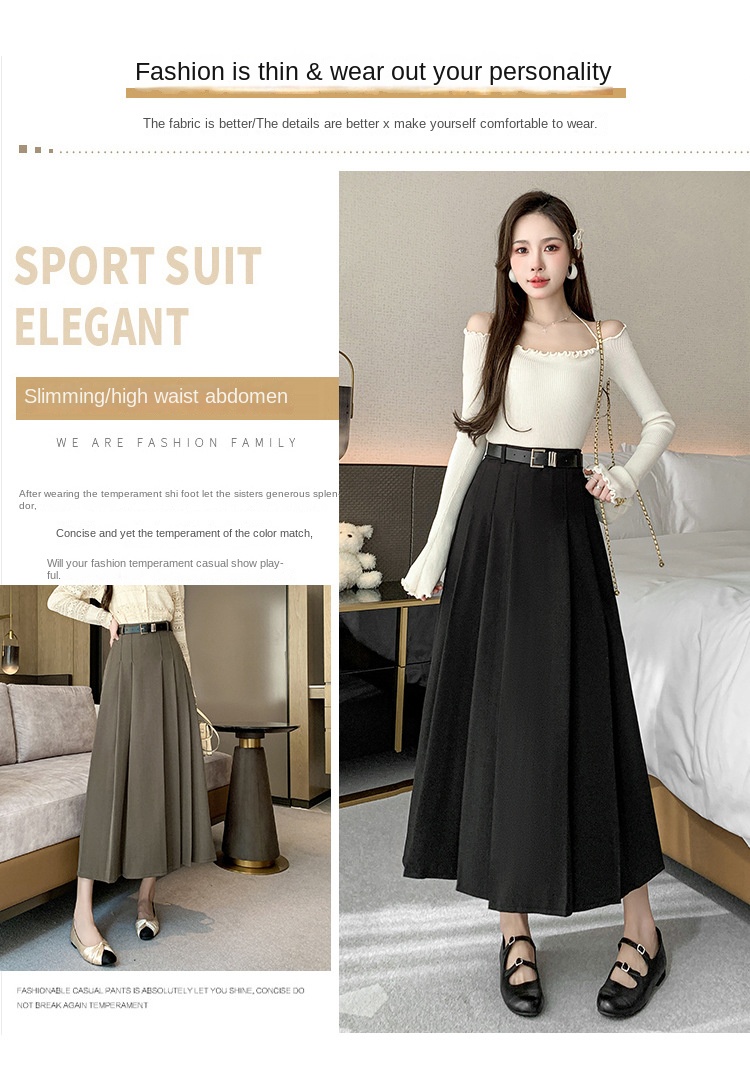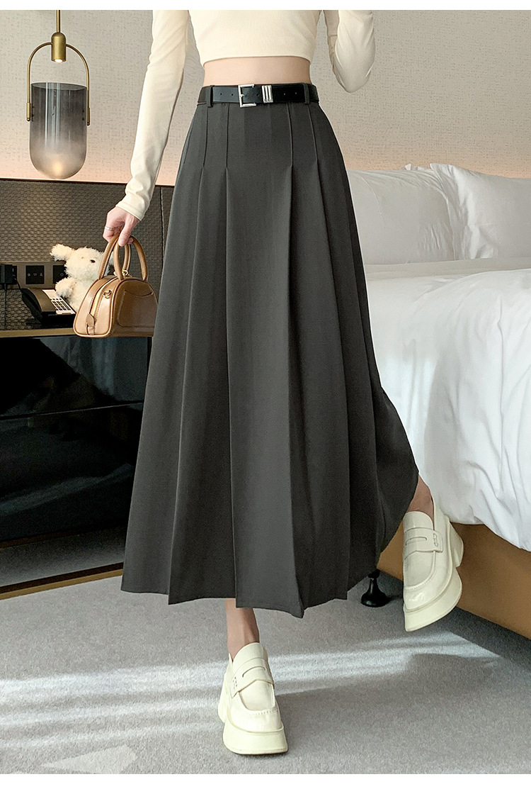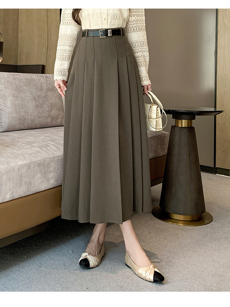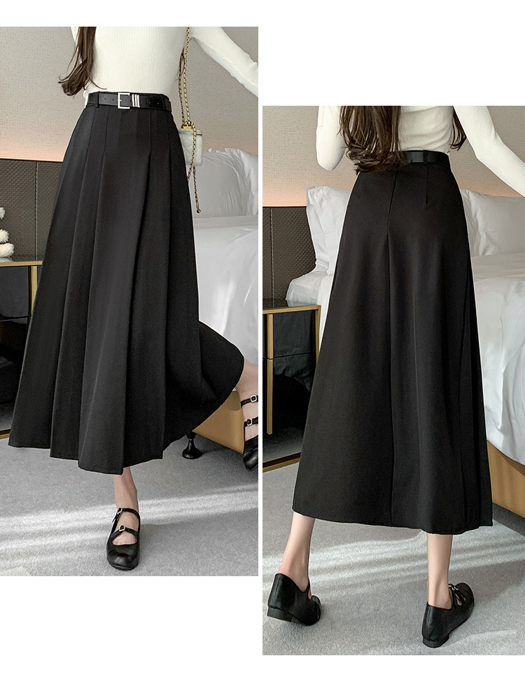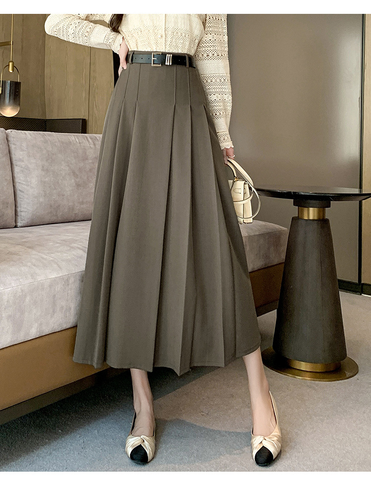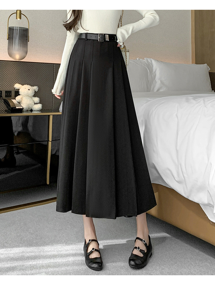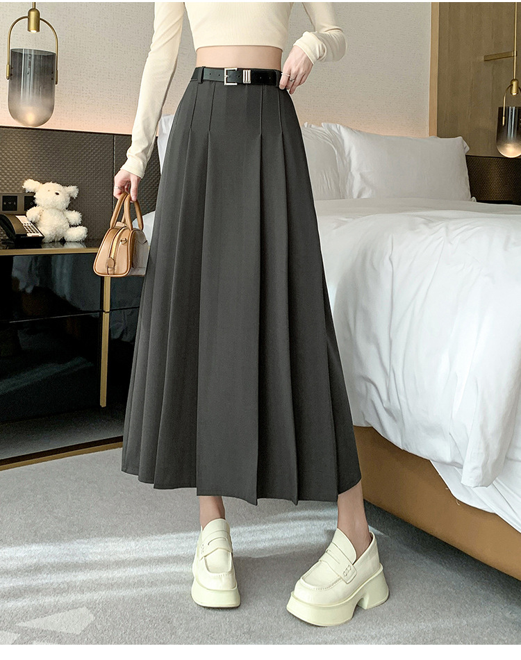 Mid-length A-line Skirt for Women High Waist Pleated Long Skirt Office Style Over-the-Knee Suit Style Umbrella Skirt