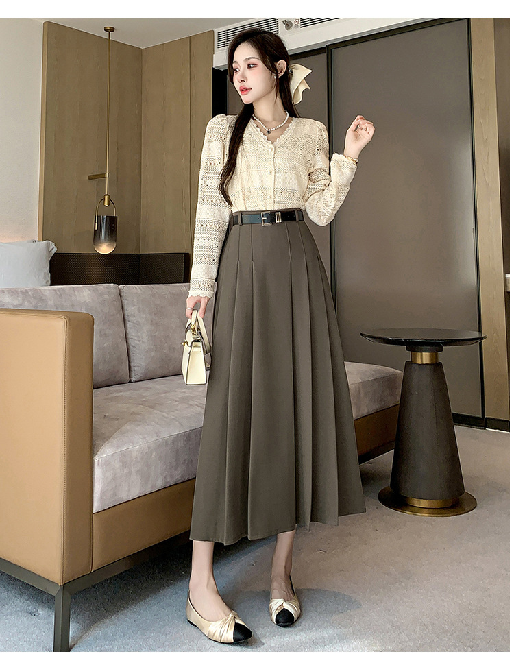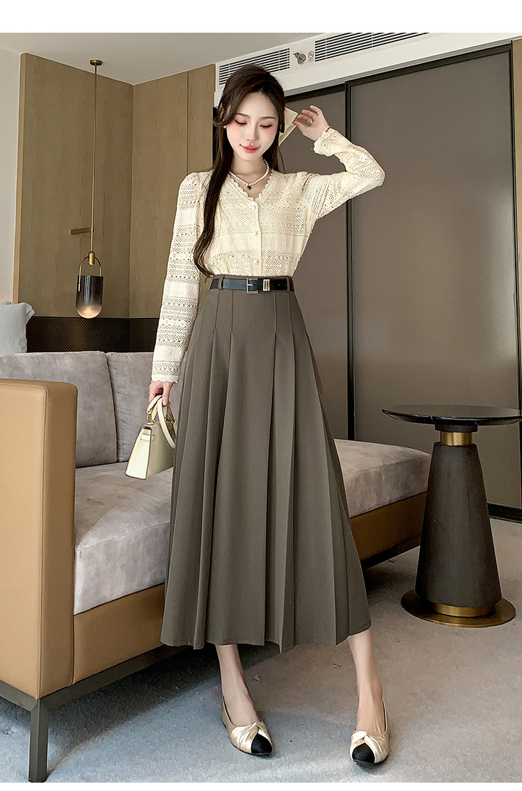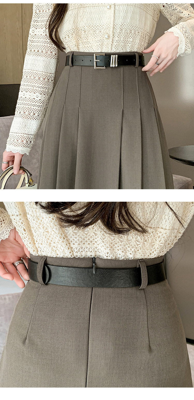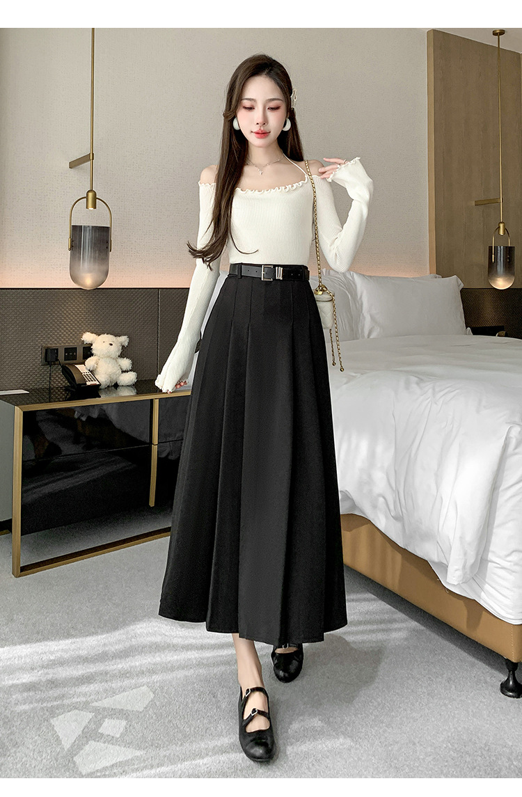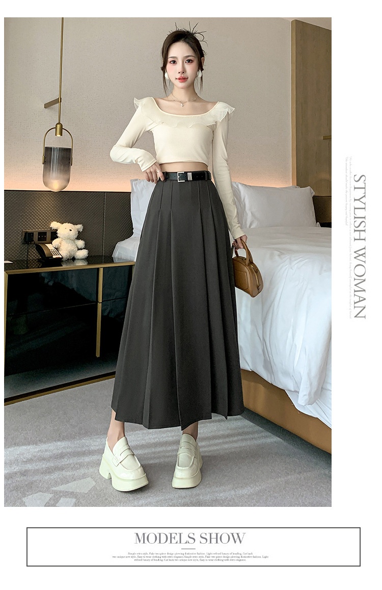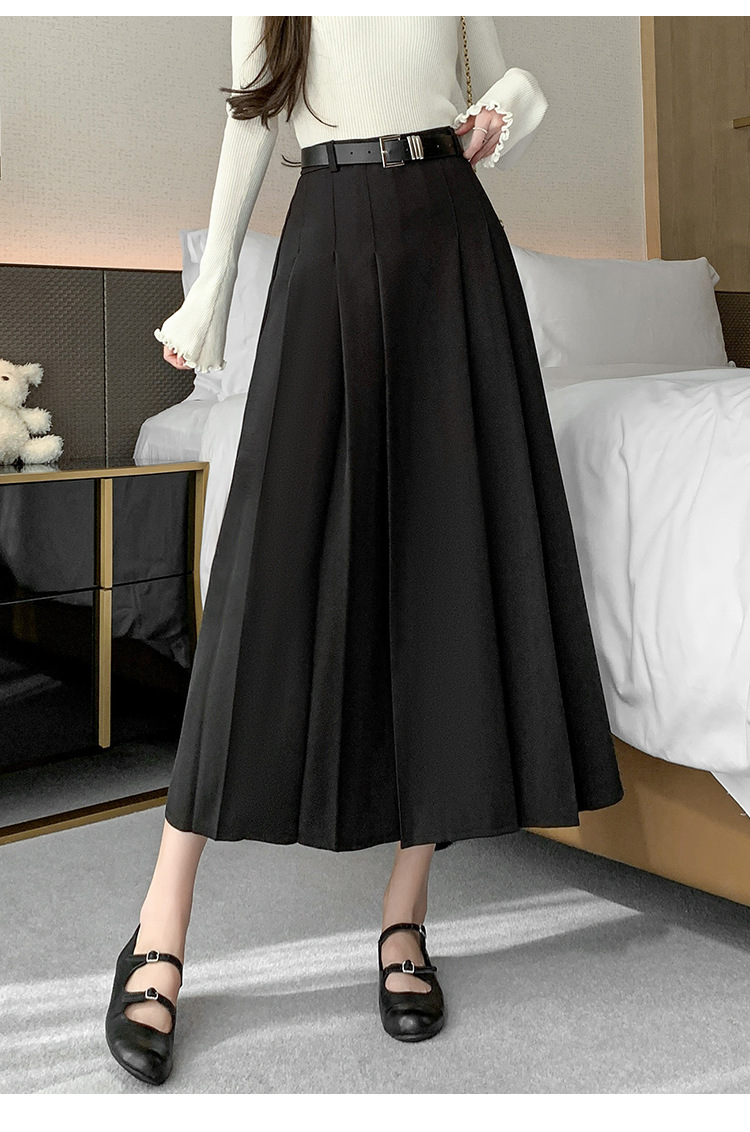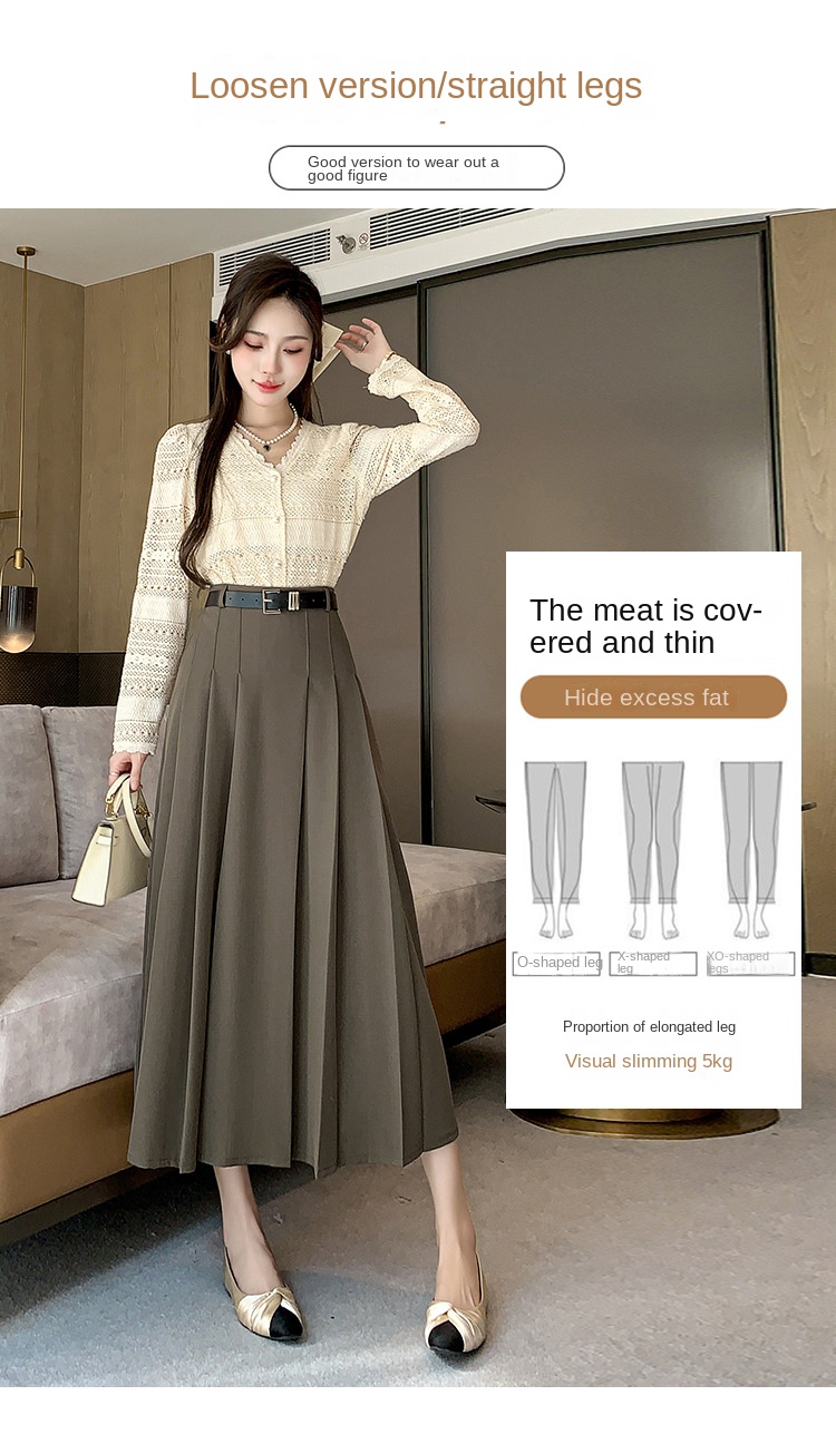 Mid-length A-line Skirt for Women High Waist Pleated Long Skirt Office Style Over-the-Knee Suit Style Umbrella Skirt
