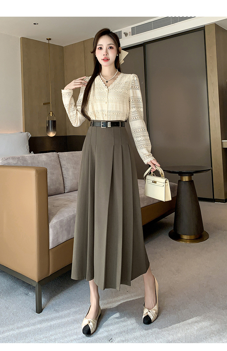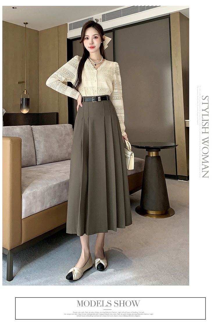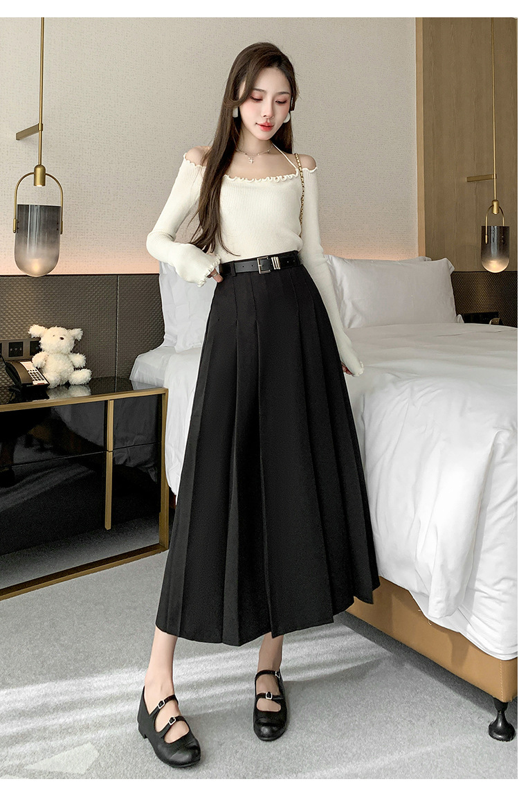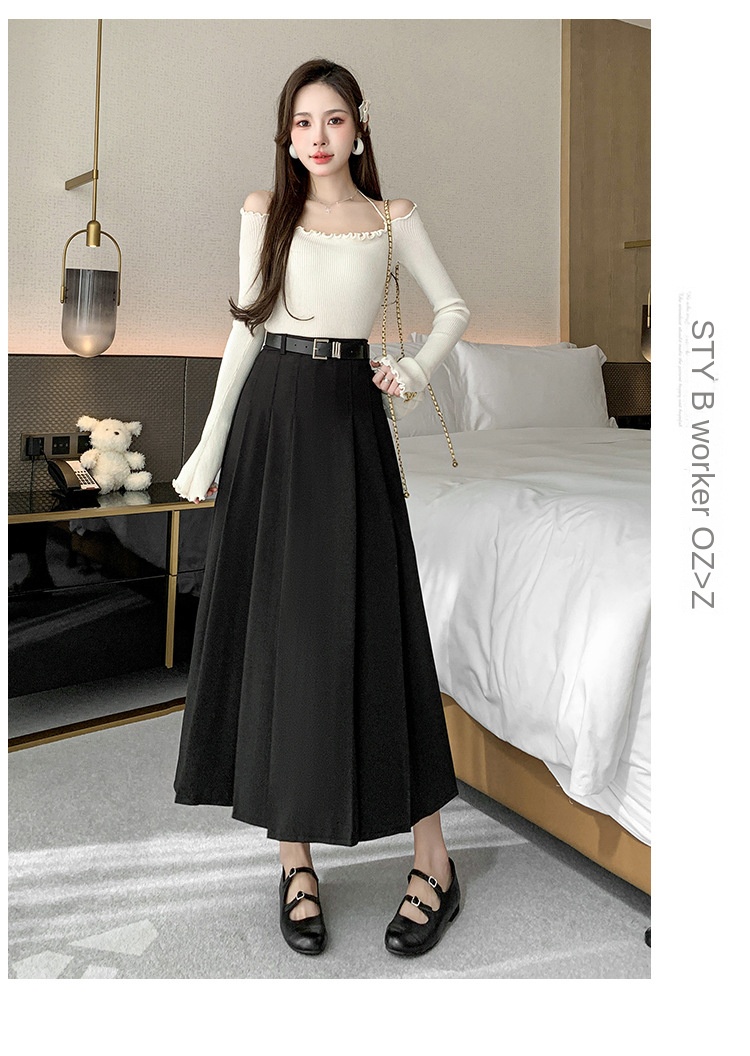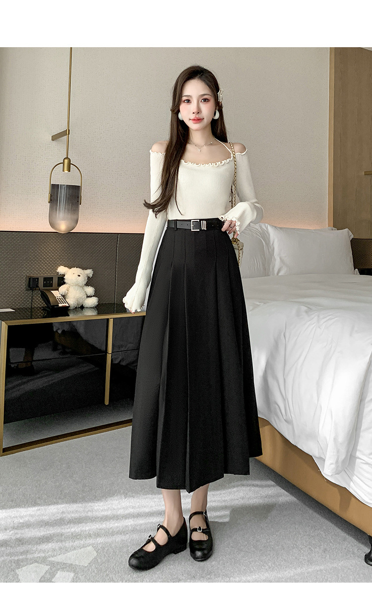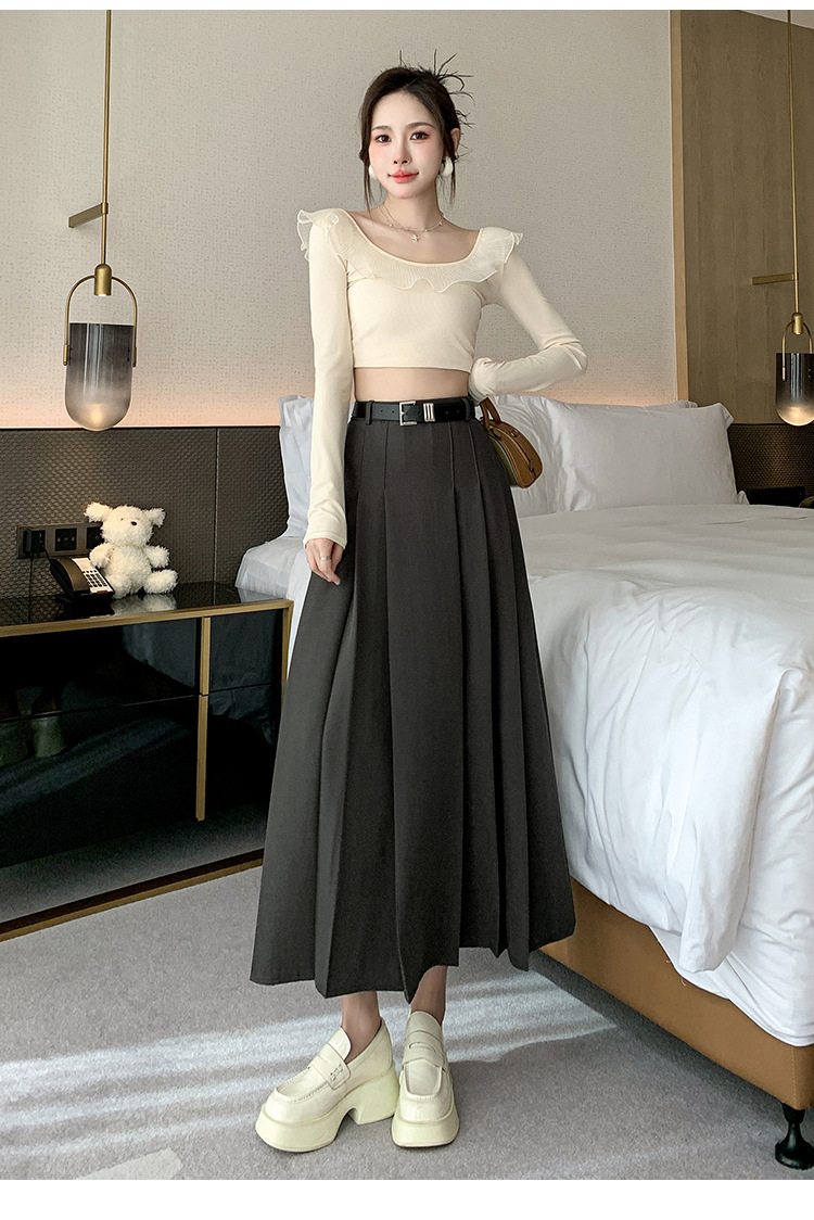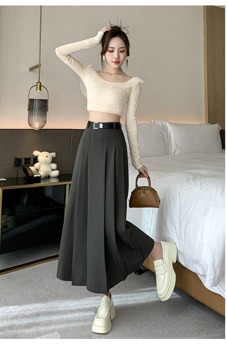 Mid-length A-line Skirt for Women High Waist Pleated Long Skirt Office Style Over-the-Knee Suit Style Umbrella Skirt